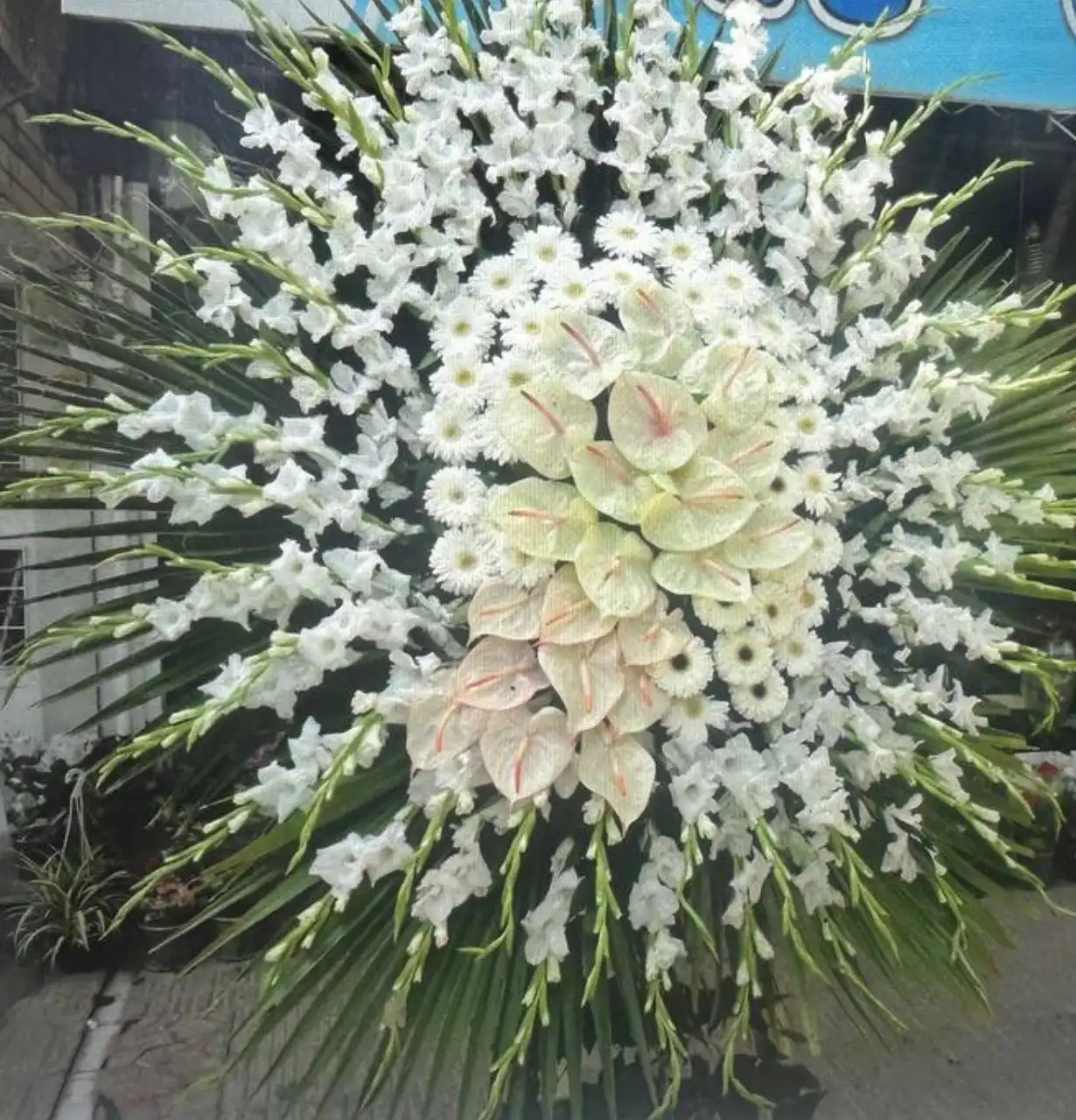 تاج گل طبیعی یک طبقه ترکیبی آنتوریوم برای انواع مراسمات عزا و همچنین عرض تسلیت با استفاده از ترکیب گل های آنتوریوم می باشد.