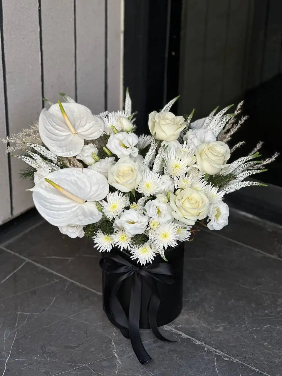 سبد گل سفید تک
